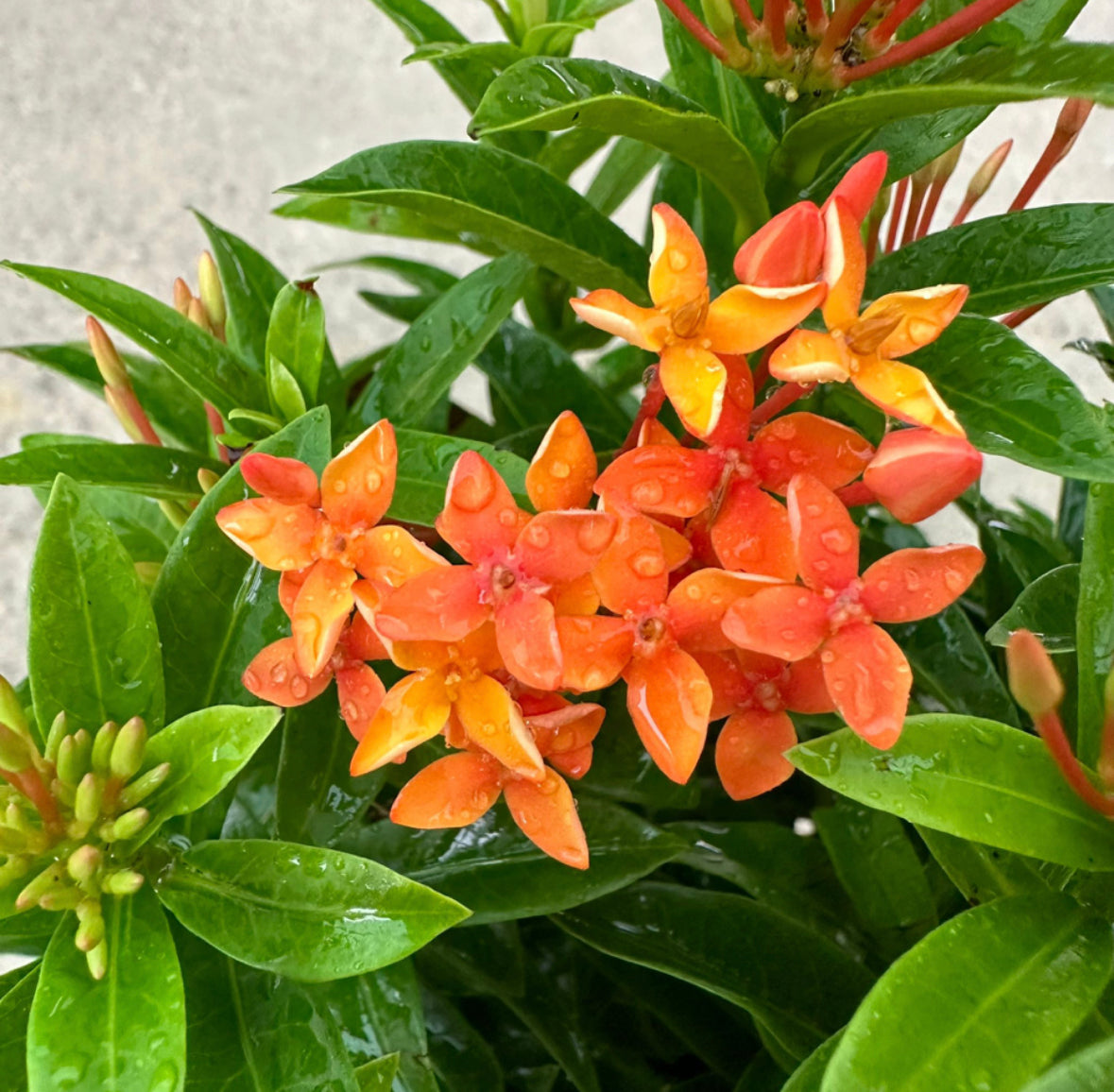Ixora have beautiful flowers that bloom as clusters of four-petal florets and are often planted in home garden and on the street sidewalks to beautify the environment.
