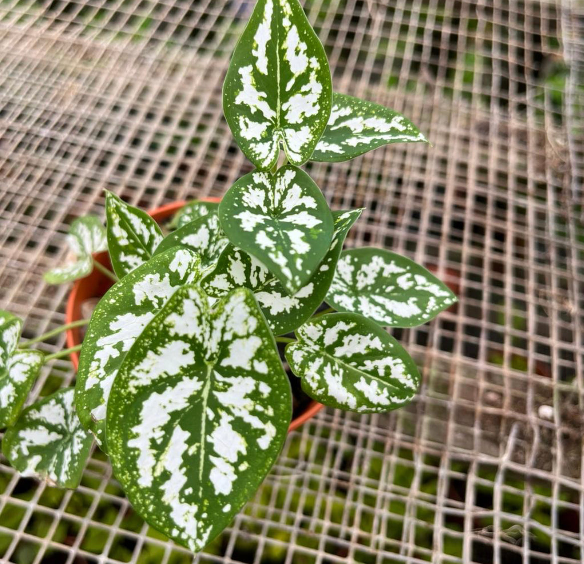 Caladium Humboldtii, commonly known as Angel Wings, has large, heart-shaped leaves that can be strikingly patterned with bold green and white, resembling angel wings.