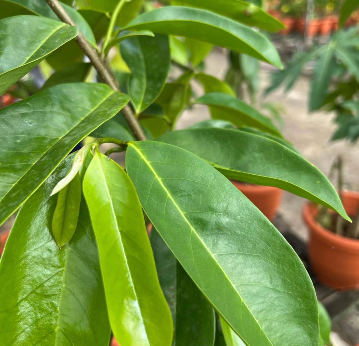 Soursop Plant is a tropical fruit-bearing tree valued for its delicious fruit and potential health benefits. It has glossy, dark green leaves. The fruit is large, heart-shaped, and green with spiky skin.