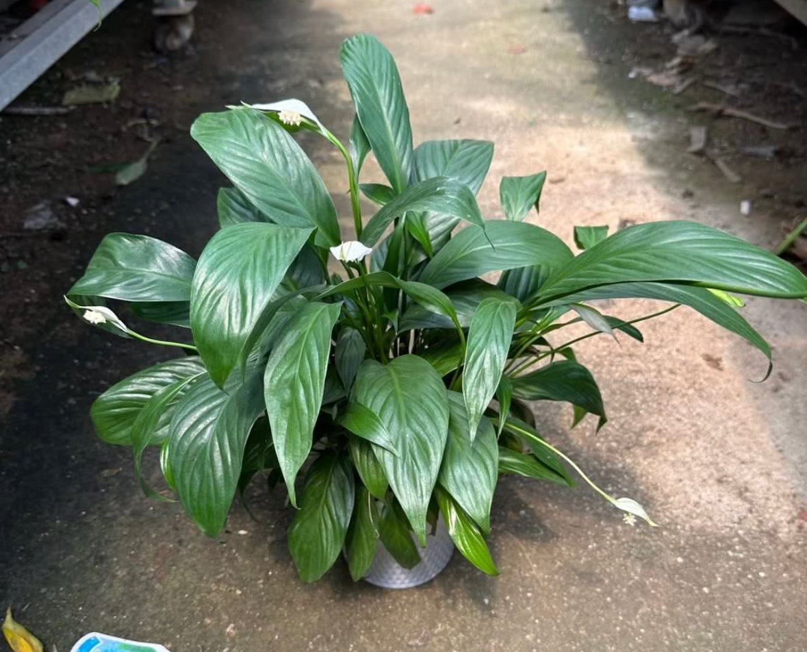 Spathiphyllum Wallisii 'Dwarf', commonly known as the Dwarf White Peace Lily, is a compact version of the popular Peace Lily. It is cherished for its elegant white flowers and lush green foliage.